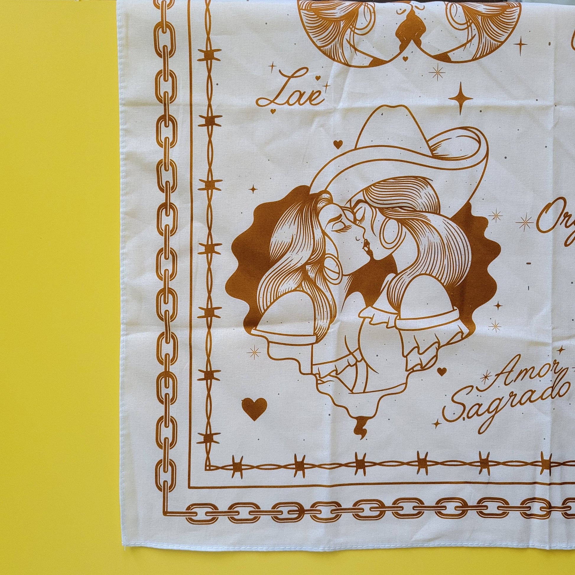 About The Design: Amor sagrado translates to Sacred Love in english. The intention behind this design is to combat the way queer love and queerness in general has been depicted. A lot of us grew up being scared of having crushes on someone of the same gender. Some of us grew up with a feeling of guilt because we were taught that it was a sin to be gay. We hope that this design helps celebrate us and celebrate love.