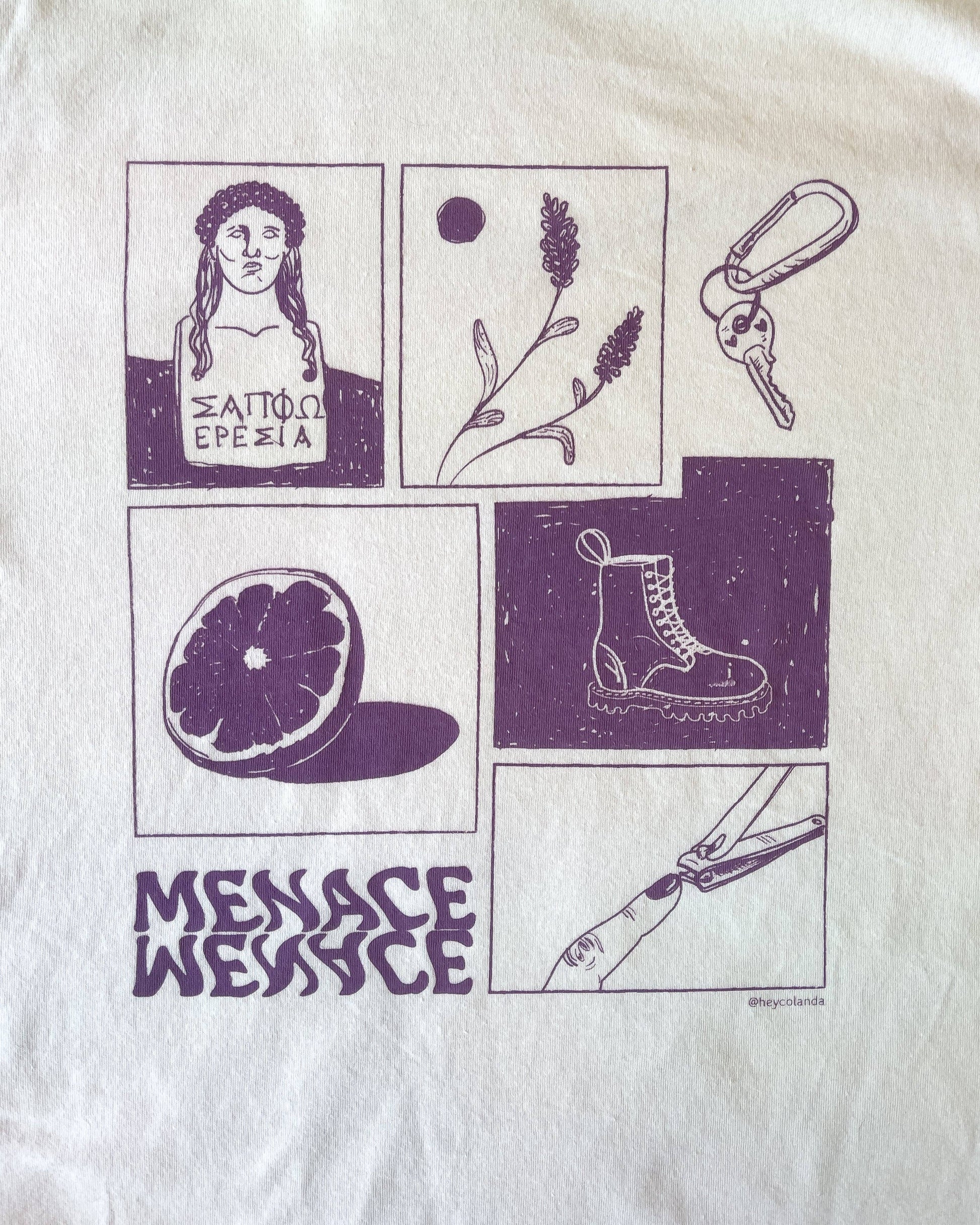 Lavender Menace, Sapphic Hand Printed T-Shirt