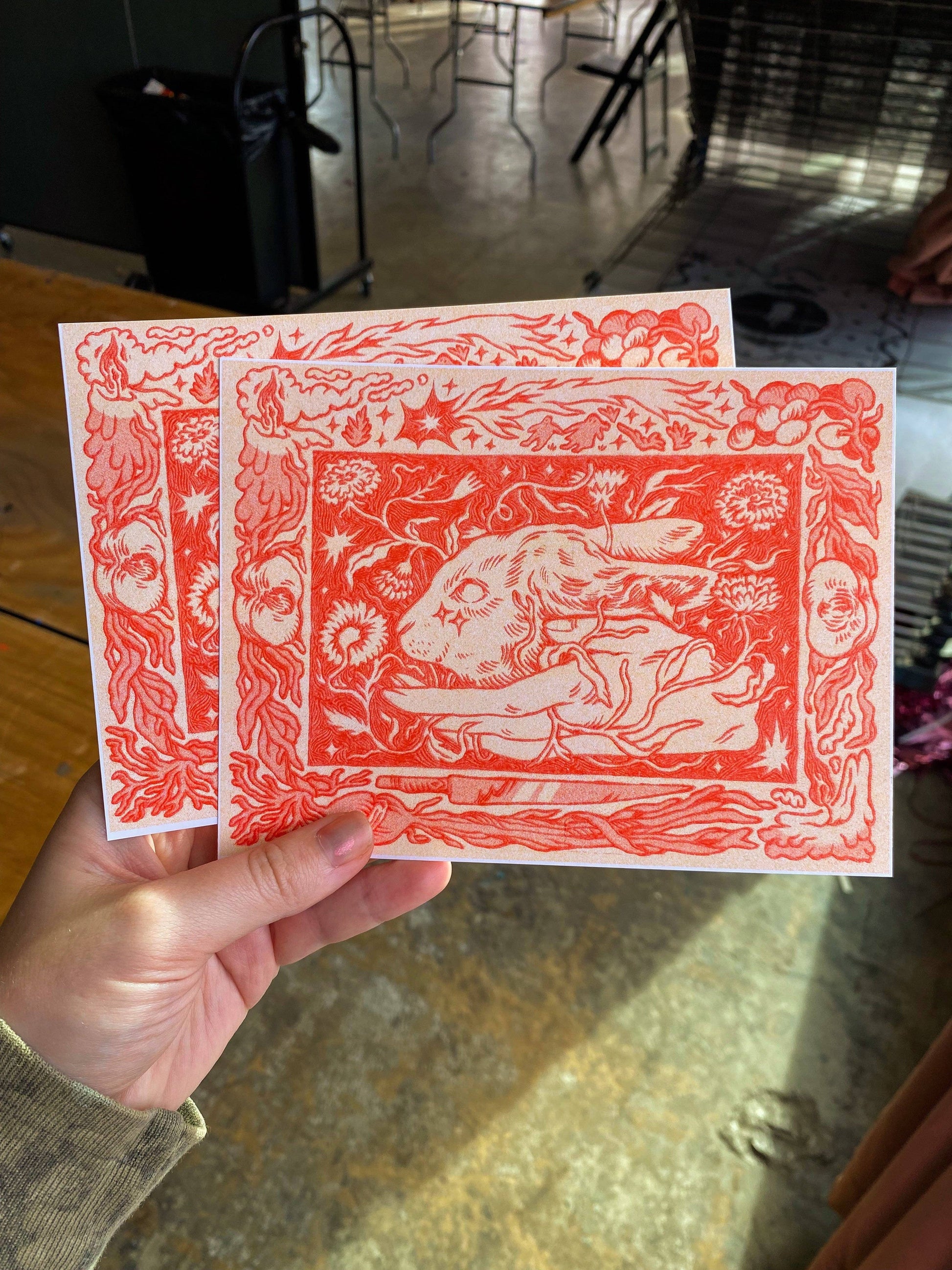 Wood-Burned Rabbit Riso Print